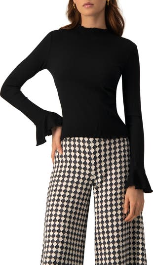 A fitted ribbed top, designed with long sleeves and playful flared cuffs. The subtle lettuce-edge hemline adds a feminine finish