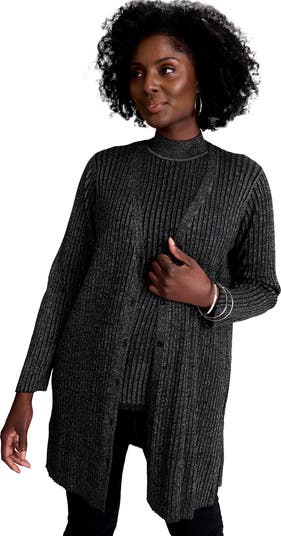 - This classic midi-length cardigan is detailed with cozy ribbing for a touch of texture. Pair it with the matching Ribbed Sleeveless Shell for a look you can easily dress up or down. Straight silhouette Y-neckline Long sleevesButton-front placket Ribbed cuffs and bottom hem 36&rdquo lengthAcrylic Machine washableImported