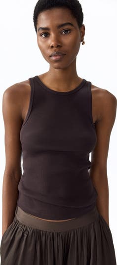 Fitted tank top in ribbed jersey made from a silk and cotton blend. Round neckline and narrow trim at neckline and armholes.