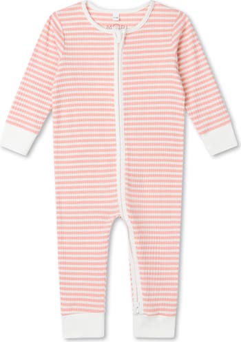 MORI Ribbed Stripe Two Way Zip-Up Sleepsuit, Main, color, Pink Stripe