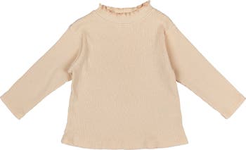 Soft ribbed long-sleeve turtleneck in 100% Pima cotton, featuring a high neckline with delicate ruffle trim and gentle stretch for comfort. Long sleeves make it perfect for layering, and the versatile neutral shade pairs beautifully with our Harvest Festival prints. Made in Peru with love.