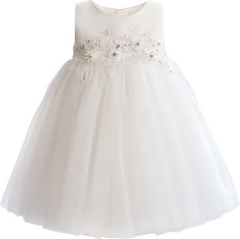 A refined dress for a child that pairs a structured bodice with a full, flared skirt and a statement waist bow, creating a timeless, picture‑ready silhouette for formal occasions.