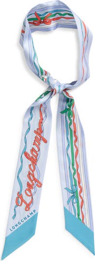 Colorful ribbon motifs bring a signature look to this silk bandana scarf cut in a slim silhouette that wraps the neck or ties neatly to the handle of your favorite bag.