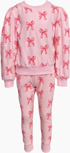 Adorable and stylish, this set features an all-over pink ribbon print on a soft, light pink background, making it a charming choice for any little fashionista. This matching set combines comfort with trendsetting style, making it perfect for casual outings, playdates, or cozy days at home.