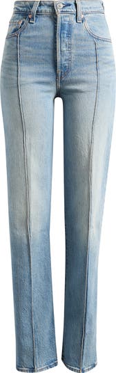 The straight-leg silhouette and front-seam detail enhance the trouser-inspired appeal of this these jeans made from low-stretch denim.
