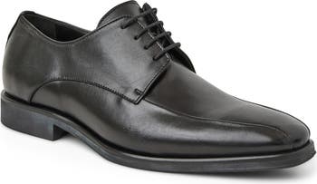 A bicycle toe furthers the streamlined profile of an Italian-made derby featuring a rich leather upper and durable rubber sole.