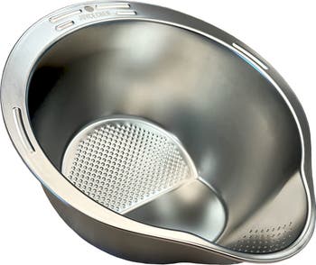 Joyce Chen was passionate about cooking healthy and delicious meals, and making Asian cooking accessible to every household; forever enriching the cuisine, culture, and curiosity of culinary experts and enthusiasts alike. JOYCE CHEN® Kitchenware is inspired by her legacy and offers a complete range of products that help you craft authentic Asian dishes in your own kitchen and bring delicious new flavors to your table. Upgrade your kitchen with the versatile Joyce Chen Rice Washer and Colander, built to handle all your washing and draining needs. Crafted from high-quality, rust-resistant stainless steel, this durable tool will stand the test of time. The unique agitator bumps on the bottom help efficiently remove starch from rice or grit from fruits and vegetables. With a spacious 9.5” wide, 5” deep basin, you can easily wash large quantities of rice, grains, or produce. The angled bottom allows for quick and effortless draining, while the properly sized drain holes keep food secure while letting water flow freely. Whether you're washing rice, draining pasta, or cleaning fresh fruits and vegetables