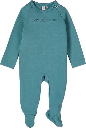 Treat your cherub to cozy comfort with this charming "Sweet Dreams" footie. It features lofty cotton-rich fleece, brushed inside for blissful softness. It's infused with just enough stretch for flexible feel-good fit. Plus, it slips on and off with ease, thanks to its hidden zipper with handy matching pull.