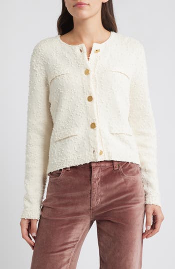 Glinting buttons elevate this textured cardigan knit from pure wool.