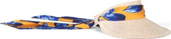 Built-in sun protection is just another reason to love this packable straw visor secured with a floral-print satin tie.