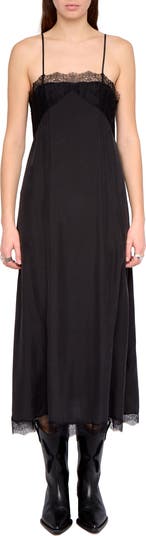 Lace trim at the neckline and hem add a touch of subtle romance to this smooth silk slipdress.