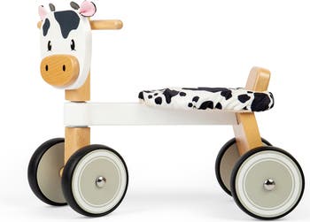 Moo-ve out of the way, toddler coming through! This udderly adorable Ride On Cow features four chunky wheels, sturdy wooden handlebars, and a fluffy seat for added comfort. Meanwhile, the cow's natural wood design will add a charming touch to your tot's playroom or nursery.Once your littlen is confident on their feet, ride on toys are a great next step to strengthen their gross motor skills, coordination and balance. They also give youngsters a sense of freedom and independence.Made from sustainably harvested FSC® Certified wood and coloured with non-toxic paints and lacquers. Conforms to current European safety standards. Suitable for 18+ months.
