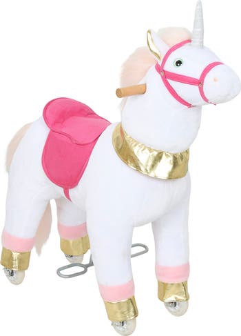 Ride on Unicorn Toy for Kids Plush Baby Rocking Horse Mechanical Walking Animal with Wheels No Batteries Required