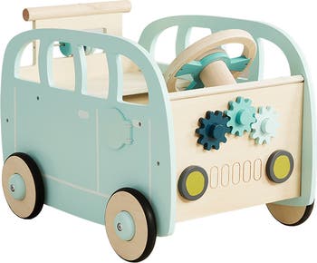 Your child will learn to be ready for road-trip adventures while playing with this mini car that's a push toy and scooter as well. The interior includes a steering wheel with beeping horn and brake and accelerator pedals for super fun imaginative play. Exterior features include the front grill with spinning gears and doors with side-view mirrors for hands-on engagement. The back has an abacus for counting and sorting, and a storage trunk for their favorite toys.