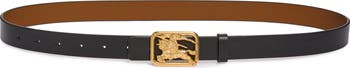The polished metal Equestrian Knight Design hardware from Burberry's Rider bag is recast as a statement buckle on this reversible Italian-leather belt with hand-painted edges.