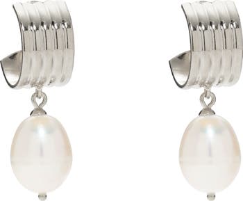 Freshwater pearls add an extra touch of timeless sophistication to these ridged hoop earrings.