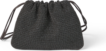 - Drawstring closureShoulder strapLeather liningInternal pocketNickel-free monili decorationThe bag is approximately 25 cm (9.84\") long, 20 cm (7.87\") wide, and 2 cm (0.79\") high