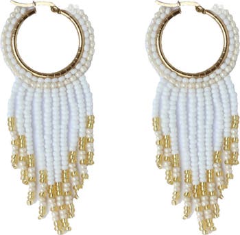 - Details: Handcrafted by artisans in Medellin, ColombiaMaterials: seed beads / stainless steel hardwareSize: Approximately 3.5 inches from top of hook, 1.5 in diameterSKU: E1135