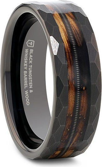 • Black tungsten, charred whiskey barrel wood and guitar string