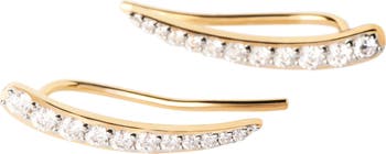 Sleek climbing earrings featuring pavé zirconia in pointed curve
