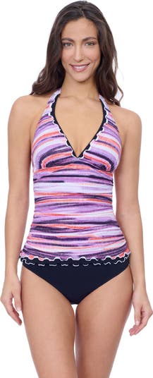 The Riga Tricolore Halter Tankini combines vibrant style with comfort, featuring bold color blocking and a flattering halter neckline. Designed with Built in soft cu