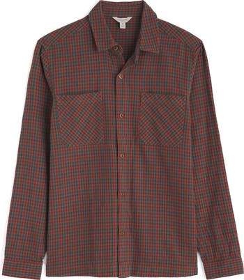 A tiny, colorful check pattern neatly grids an overshirt made of a textured organic-cotton weave that's brushed for enhanced softness and warmth. Wear it buttoned-up or layered and unbuttoned—the straight hem keeps you untucked and casual no matter which way you style it.