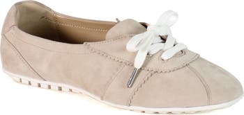 Step into casual elegance with the RIGHT THYME sneaker by Diba True. Inspired by classic ballerina silhouettes, this lace-up design blends sporty comfort with feminine flair. Available in rich suede or smooth leather, it features an almond toe and a flexible rubber sole for all-day wear.