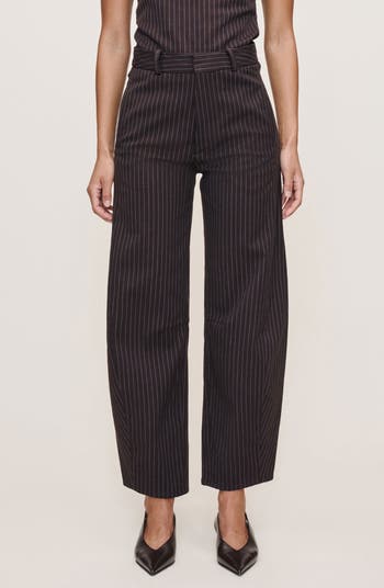 Tick off all the trends in these cool ankle pants covered in preppy stripes and cut in a bold barrel-leg silhouette.