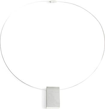 A rectangular pendant accentuates the modern, minimalist design of this rigid silvertone necklace.