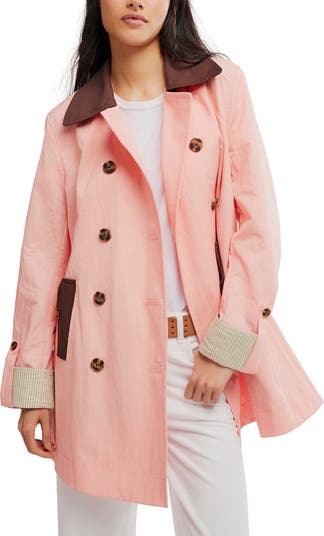 A pretty pink hue lightens the look of a sturdy canvas coat accented in rich faux leather. Check out the cuffs for even more cheerful style points.