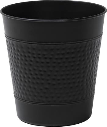 The small size of this classic trash can is ideal for the bathroom, bedroom or office. Made from durable steel, it has an accent band of hammered texture. Add a modern touch to any space with this stylish trash receptacle.