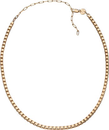 Whether layered or worn alone, this box-chain necklace plated in 18-karat gold is a contemporary-chic addition to any look.