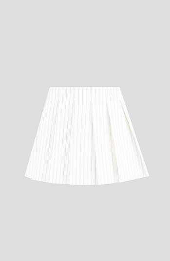 The Pinstripe Pleated Skort offers elegant style and versatility. With a zip fastening and pleat detailing, this skort is both practical and chic. The internal short add comfort and coverage. Perfect for any occasion, from work to a night out. Tonal