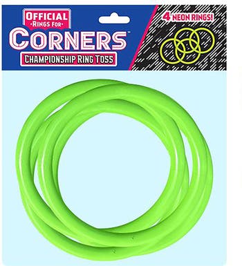 CORNERS CHAMPIONSHIP RING TOSS: RING SET - 4 PIECE GREEN - Elevate your ring tossing experience with the CORNERS Championship Ring Toss – Official 4 Piece Ring Set, designed for both indoor and outdoor play. Crafted from high-quality polypropylene, these rings boast flexibility, durability, and safety, ensuring hours of fun in any environment. The set includes four rings in vibrant green. Immerse yourself in the excitement of tossing these stimulating NEON-colored rings, adding an extra element of fun to your gameplay. Specifically intended for use with the CORNERS Championship Ring Toss game, this set promises an authentic and thrilling experience for players of all ages. But the fun doesn't stop there – these versatile rings can be incorporated into various ring tossing games. Whether it's a backyard gathering or an indoor competition, the possibilities are endless. Engage in a game that goes beyond entertainment – it's a pathway to increased social skills, critical thinking, problem-solving, and boosted confidence. Choose the CORNERS Championship Ring Toss – Official 4 Piece Ring Set for a high-quality, versatile, and engaging addition to your indoor and outdoor activities. Elevate your play, bond with friends and family, and experience the joy of friendly competition like never before!
