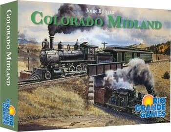 RIO GRANDE GAMES: COLORADO MIDLAND - Fabulous riches are discovered in the nearly inaccessible Rocky Mountains. Gold and silver mines are opening in remote boomtowns and the mine owners want men, equipment, and supplies to work the Mother Lode. Now, they say, is the time to build the rails through the Rockies! The sooner a railroad gets to a mine, the greater the profits for the mine owner before the mine is exhausted. The iron horse means money, and lots of it. Players are mine owners spurring the fledgling railroads through the daunting alpine terrain to the various booming mining districts. There is no luck during the game, just shared incentives and emergent alliances between players. A game for three to five players with less than an hour of playtime, designed by the modern master of train games. Plan your rail network carefully. Optimize routes, anticipate your opponent's moves, and secure your legacy. Will you emerge as the railroad tycoon of the Rockies? Only time—and the clatter of steel wheels—will tell! Ages 12+, 3-5 Players, 45 Min