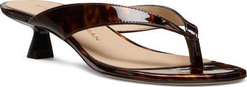 Glossy straps taper to a center toe post on a Spanish-made flip-flop grounded by a kitten heel for a stylish whisper of height.