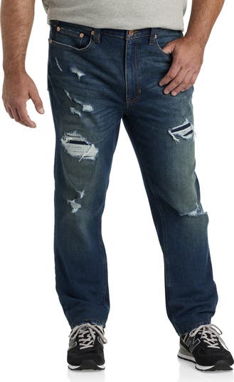 Purposely destructed and ripped, these distressed jeans with a touch of stretch are right on trend. Designed at DXL with proper proportions and a flattering fit for Big and Tall guys, they offer modern rip and repair styling and are the perfect choice to pair with your favorite graphic tees for edgy weekend style. Designed in a Tapered Fit, our most modern fit, they sit below the waist at the front and are tapered through the hips and thighs and legs.