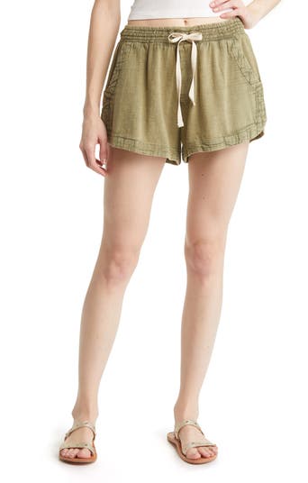 A smocked waistband tops these comfy, weekend-ready shorts cut from softly crinkled cotton.