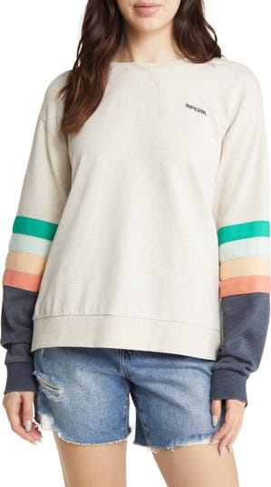 Colorful herringbone-tape stripes at the sleeves decorate this cozy cotton sweatshirt that's the perfect addition to your off-duty wardrobe.