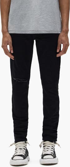 Built from stretch-enhanced denim that moves but holds shape, these slim-leg jeans feel broken-in from day one. Rips stitched back together set a well-loved mood, while the clean leg keeps the profile sharp.