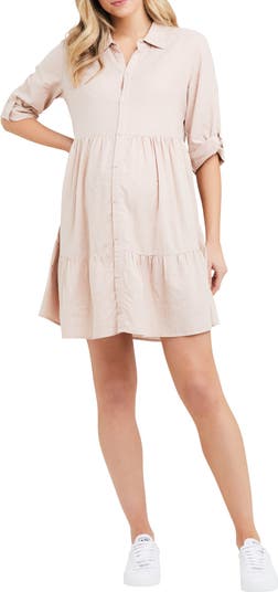 This casual yet sophisticated maternity dress is made from an airy linen blend and finished with front buttons to make nursing a breeze.