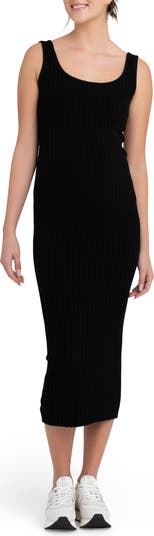 Stretchy rib stitching makes this sleeveless maternity dress a comfortable style staple from the first trimester to the third.
