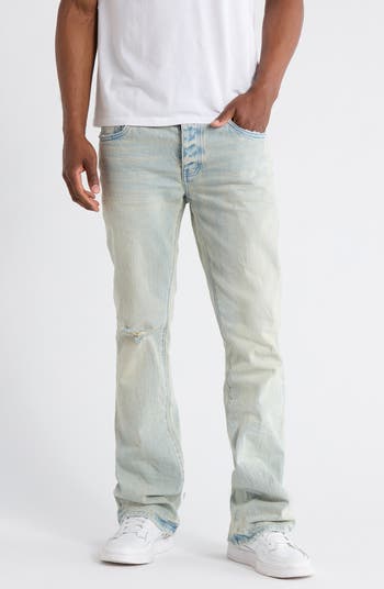 Strategic distressing and flared hems lend laid-back style to these skinny jeans enhanced with a bit of stretch to move with you.