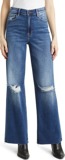 A modern take on classic '90s jeans, this roomy pair adds drama to your look with ripped knees, raw hems and stretch-kissed denim.