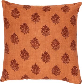 Cinnamon pillow cover with Rishi print in Cacao, 20″ x 20″ knife edge decorative pillow cover. Hand screen printed by artisans. 100% Linen Pillow Cover with cotton lining. Hidden zipper enclosure. Insert not included. Handmade in India.