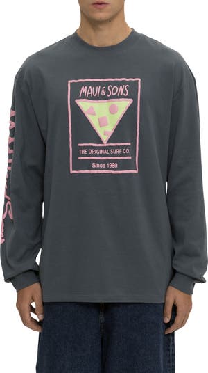 Lean into retro surf vibes with this long-sleeve cotton T-shirt stamped with bold front artwork and matching sleeve graphics for street-ready appeal.