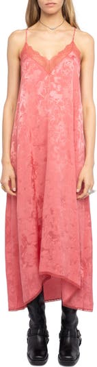 A swirling jacquard romances this slinky slipdress cut from rich silk and accented with lovely lace.