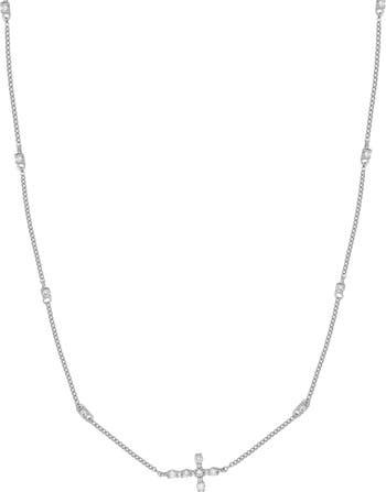 This handcrafted necklace in18-karat white gold features a slim cross pendant punctuated by 19 round diamonds that brighten casual ensembles.