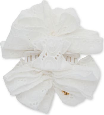 This hair clip adds a romantic touch to your updo with its eyelet ribbon fabric in an oversized silhouette.