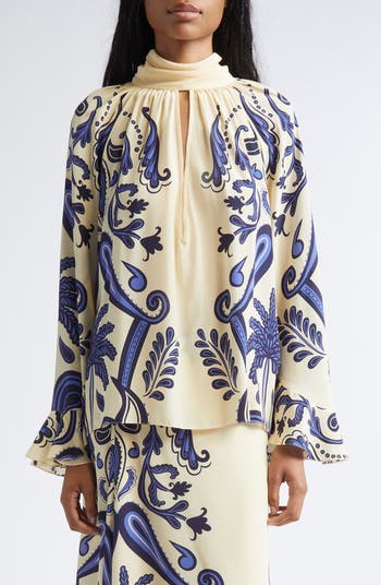 Ritmo Sol Floral Paisley Silk Crêpe de Chine Top